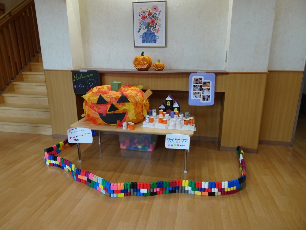 10月も中旬に入り、子どもたちが「もうすぐハロウィン?」とそわそわし始めています。 エトランスにはゆり組さんが作った大きなかぼちゃが展示されました!