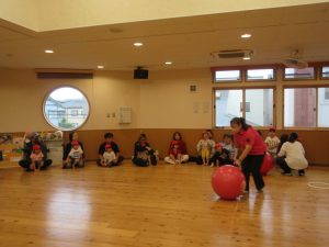 親子あそびの時は、思いのほか人の多さに驚いて、緊張したり泣いたりした子もいましたが、
