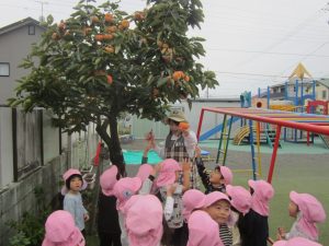 収穫した後は、部屋で柿をよく観察し、みんなで仲良く食べました♪