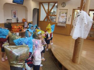 かぼちゃのランタンを作ったり、被り物を作ったりとハロウィンの行事を楽しみに準備していました。