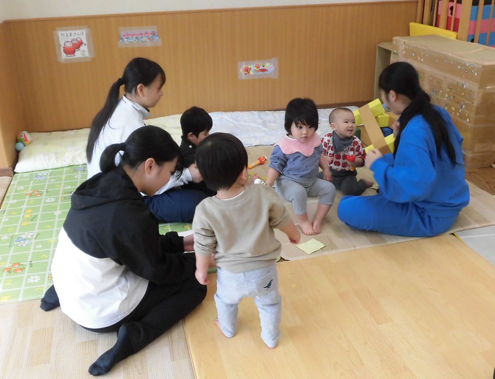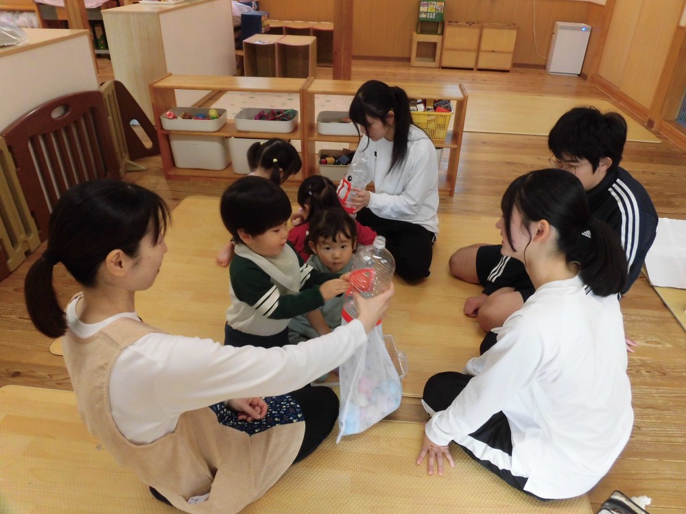 学生さんが準備してきてくれた手作りおもちゃもとても好評でした。年齢に合わせたおもちゃを考えてきてくれて、保育体験のあとも楽しく遊んでいます。