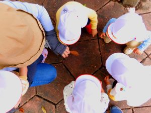 「綺麗な葉っぱあったよー」「赤だねー」とお話しながら拾ったり、