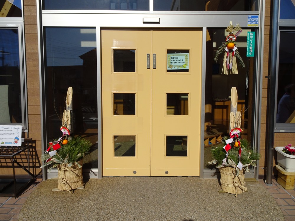エントランスにはさくら組さんがおもちつきをして作った鏡餅や 色々なお正月飾りが飾られています♪