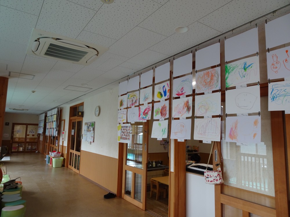 1階、2階の廊下とホール前の通路に 子どもたちの作品が展示されています。 ぜひ登降園時にお子さんと一緒にお楽しみください。